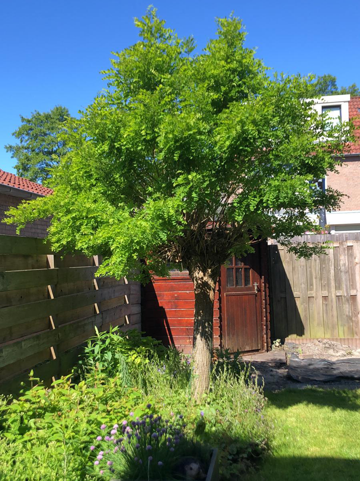 Robinia pseudoacacia ‘Umbraculifera’ or bolacacia is a tree that is most often planted in gardens or along driveways. The final height of the tree is between 350 and 500 cm. An important quality of the bulb tree is the compact spherical crown shape.